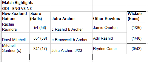 Chasing 176, the Black Caps’ run-chase was marked by composure, despite a brief wobble. Star performers Rachin Ravindra (54) and the in-form Daryl Mitchell (56) both scored up fluent half-centuries, expertly navigating the early threat posed by bowler Jofra Archer.